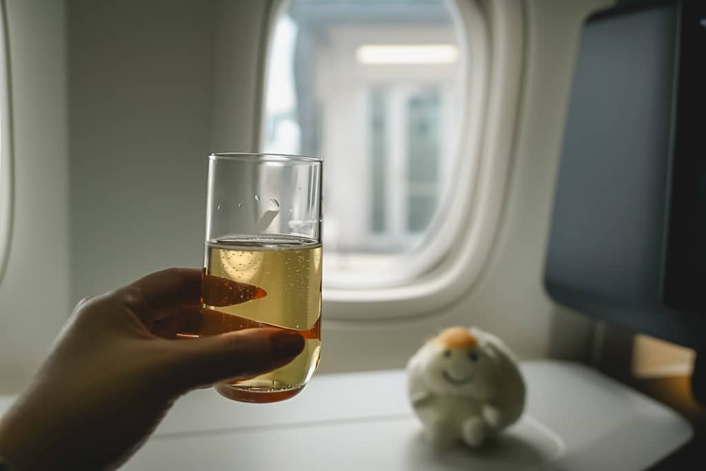 まず出発前からアメニティやシャンパーニュが配られたり、実際に席に座って操作スイッチや仕様を確認したりで、ああ大興奮で忙しすぎる!