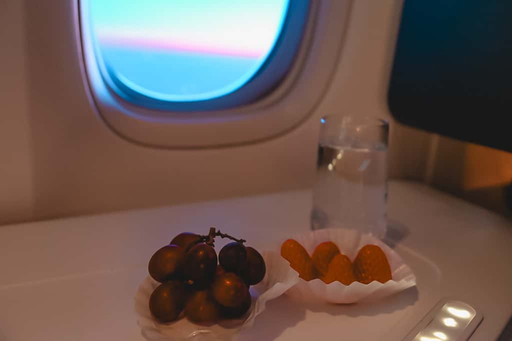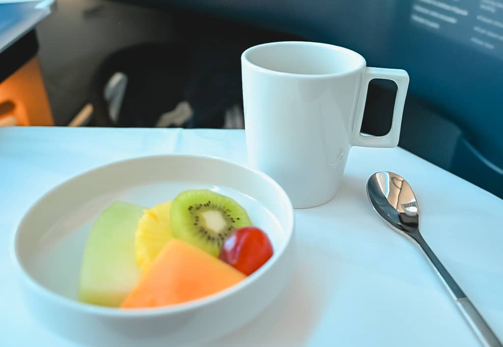デザートも選べましたが、動かないくせにすでに羽田から約3日分相当のカロリーを摂取している自覚はあるので、ここはぐっと理性を働かせ、フルーツを選択。